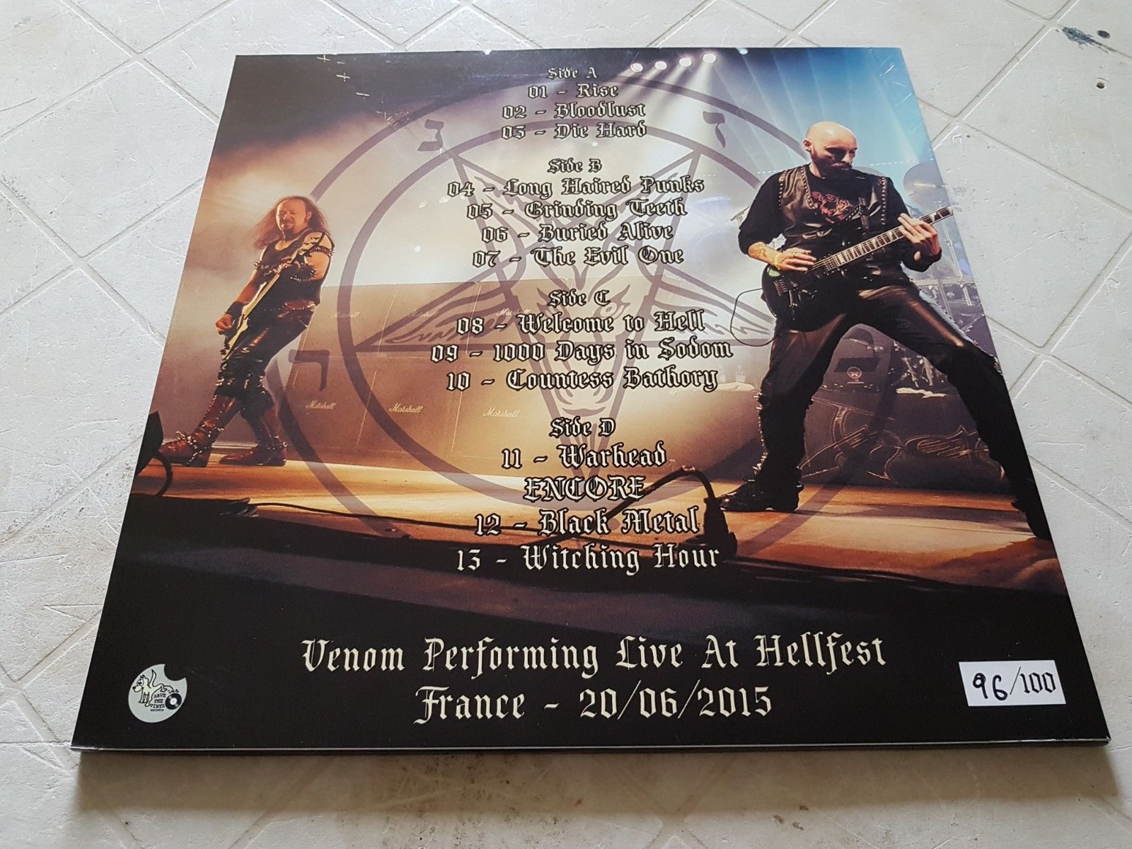 The history of venom 40 page book classic neat albums remastered from original tapes vinyl on colour splatter swirl for the first time reproduction seven dates of hell tour poster bloodlust shaped picture disc 7 reproduction 85 tour program venom s legions back patch first 300 orders receive 12 x 12 art print signed by cronos.